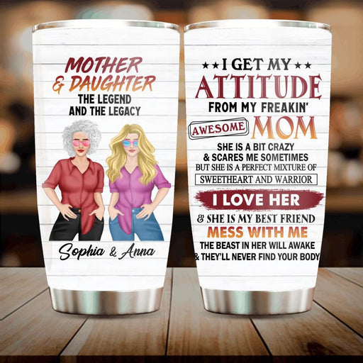 View full detailsPersonalized Mother & Daughter Tumbler - Gift For Mother And Daughter - Mother's Day Gift Idea - I Get My Attitude From My Freakin' Awesome Mom