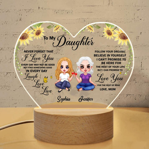 View full detailsPersonalized To My Daughter Heart Acrylic Photo Panel with Light Base - Gift Idea From Mother to Daughter - Never Forget That I Love You