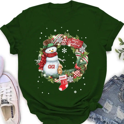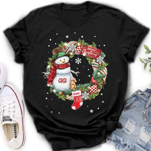 View full detailsPersonalized Grandma Mom Snowman Christmas Wreath Shirt/Hoodie - Christmas Gift For Grandma/Nana/Mother - Up to 10 Kids