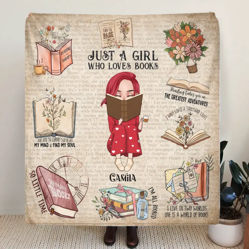 Personalized Reading Girl Quilt/Fleece Throw Blanket/Pillow Cover - Gift Idea For Book Lover - Just A Girl Who Loves Books