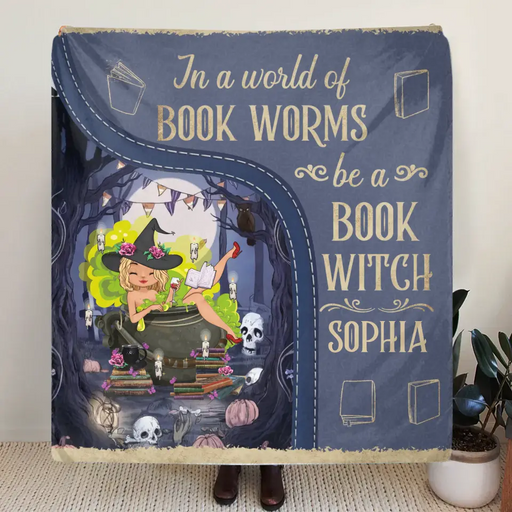 Personalized Book Witch Quilt/Fleece Throw Blanket - Gift For Witch Book Lover - In A World Of Book Worms Be A Book Witch