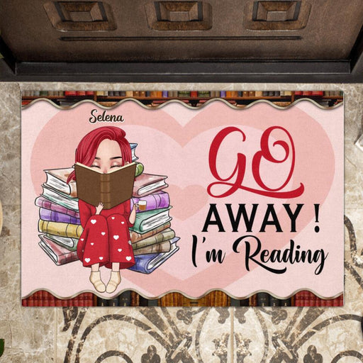 Custom Personalized Reading Girl Doormat - Gift Idea For Books Lover - Go Away I'm Reading