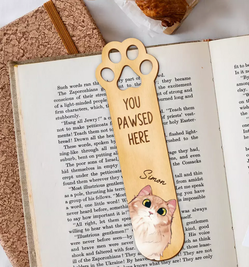 Personalized Cat Wooden Bookmark - Gift Idea For Reading Lover/Cat Lover - Up to 5 Cats - You Pawsed Here