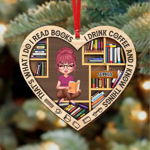 Personalized Bookshelf Wooden Ornament - Christmas Gift For Book Lover - That's What I Do I Read Books I Drink Coffee & I Know Things