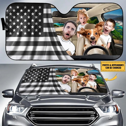View full detailsPersonalized Photo Dog Driving Family Trip Auto Windshield Sunshade - Couple With Kids And Dog- Gift Idea For Family/Couple/Dog Lover