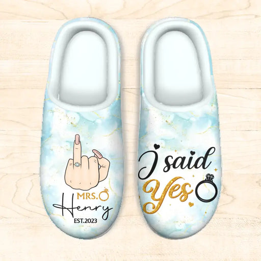 View full detailsCustom Personalized Newlywed/Enaged Couple Plush Slippers - Gift Idea For Couple - I Said Yes