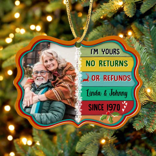 View full detailsCustom Personalized Photo Couple Rectangle Wooden Ornament - Gift Idea For Couple/Anniversary - I'm Yours No Returns Or Refunds
