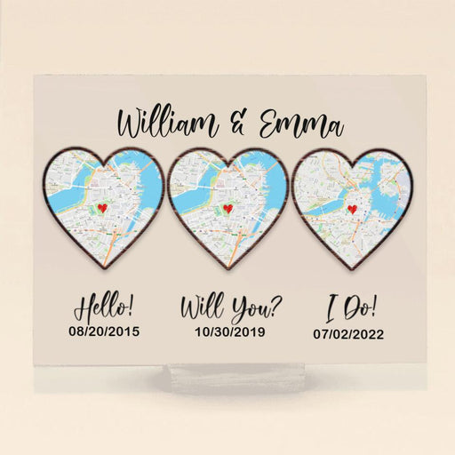 View full detailsPersonalized Map Anniversary Acrylic Plaque - Anniversary Gift Idea For Couple - Hello, Will You, I Do