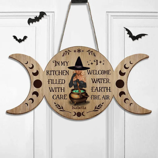View full detailsCustom Personalized Witch Wooden Sign - Halloween Gift Idea For Friends/Sisters/Wiccan Decor/Pagan Decor - In My Kitchen Filled With Care I Welcome Water Earth Fire Air