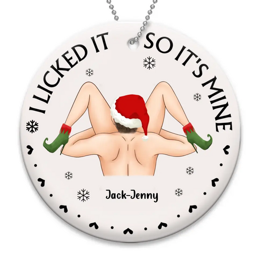 Personalized Christmas Couple Circle Wooden Ornament - Christmas Gift Idea For Couple/Gift To Her - I Licked It So It's Mine