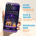 This sleek phone case protects your phone from scratches, dust, oil, and dirt. It has flexible sides that make it easy to take on and off, with precisely holes.