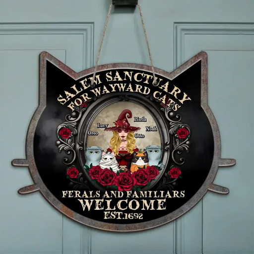 View full detailsPersonalized Halloween Cat Witch Wooden Sign - Up to 4 Cats - Halloween Gift For Cat Lovers/Wiccan Decor/Pagan Decor/ Wall Art Wicked Witch - Salem Sanctuary For Wayward Cats