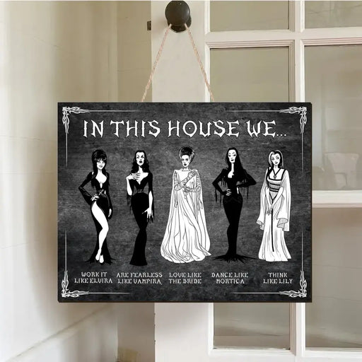 View full detailsCustom Personalized Wooden Sign Gift Idea For Halloween - In This House We Dance Like Mortica