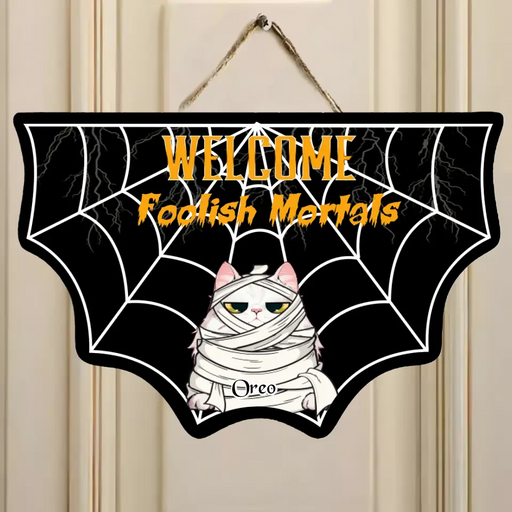 View full detailsPersonalized Halloween Pet Wooden Sign - Halloween Gift Idea For Dog/Cat Lover - Home Decoration - Welcome Foolish Mortals