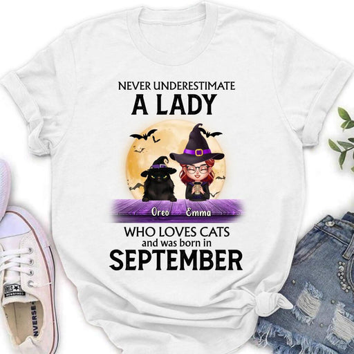 View full detailsPersonalized Cat Lady Shirt - Up to 6 Cats - Gift Idea For Halloween/Cat Lovers - Never Underestimate A Lady Who Loves Cats And Was Born In September