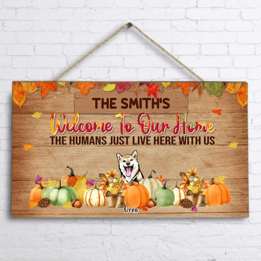 View full detailsCustom Personalized Pet Wooden Sign - Gift Idea For Halloween/ Cat Lover/ Dog Lover With Up To 6 Dogs/Cats - Welcome To Our Home The Humans Just Live Here With Us