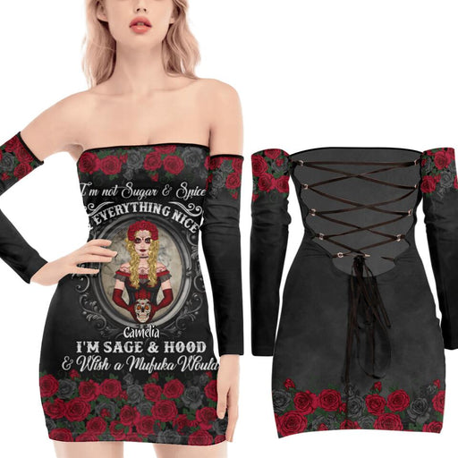 View full detailsCustom Personalized Skull Girl Off-shoulder Back Lace-up Dress - Gift Idea For Halloween - I'm Not Sugar & Spice