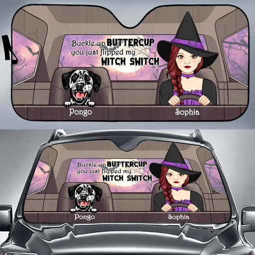 Personalized Dog Witch Car Sunshade - Up to 5 Dogs - Halloween Gift Idea For Dog Lovers - Buckle Up Buttercup You Just Flipped My Witch Switch