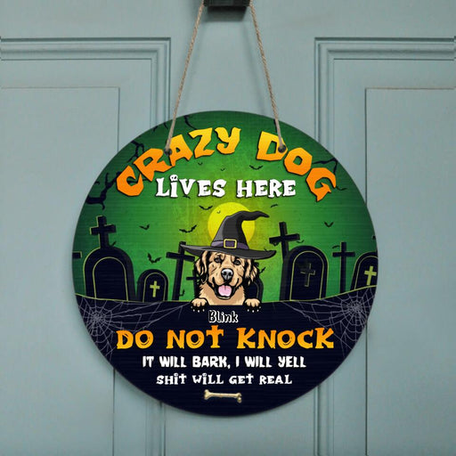 View full detailsCustom Personalized Halloween Dogs Wooden Sign - Upto 7 Dogs - Halloween Gift For Dog Lovers - Crazy Dog Lives Here Do Not Knock