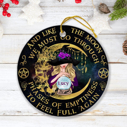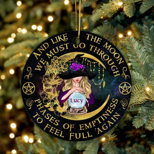 Custom Personalized Witch Ornament - Halloween Gift Idea - And Like The Moon, We Must Go Through Phases Of Emptiness To Feel Full Again