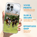 This sleek phone case protects your phone from scratches, dust, oil, and dirt. It has flexible sides that make it easy to take on and off, with precisely holes.