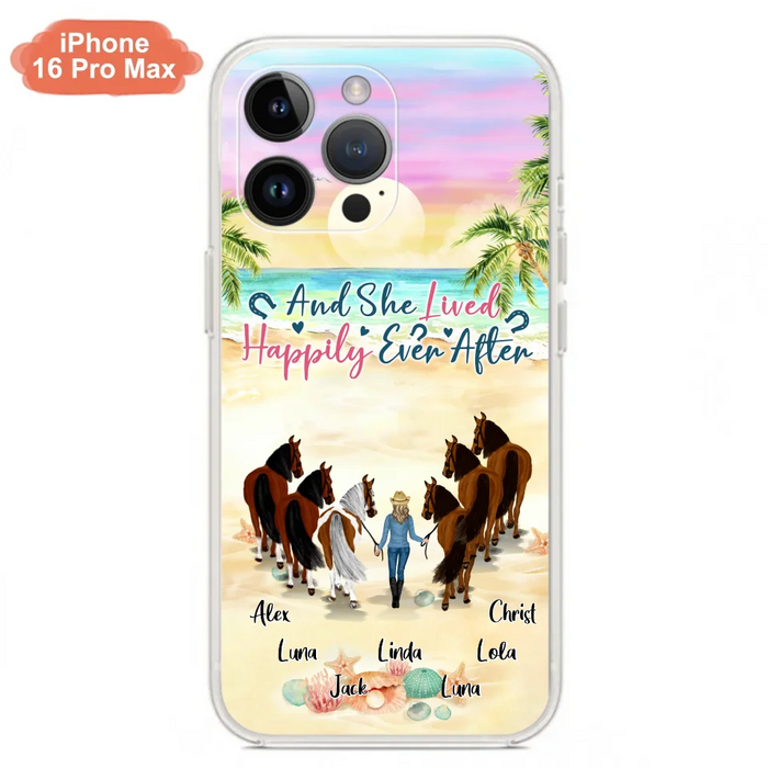 Custom Personalized Horse Girl Phone Case - Upto 6 Horses - Gift Idea for Horse Lovers - And She Lived Happily Ever After - Case for iPhone/Samsung