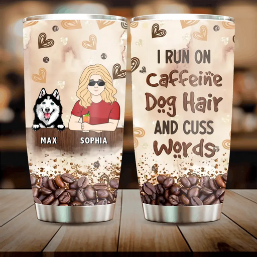 View full detailsPersonalized Pet Tumbler - Gift Idea For Dog/Cat/Horse Lovers - I Run On Caffeine Dog Hair And Cuss Words