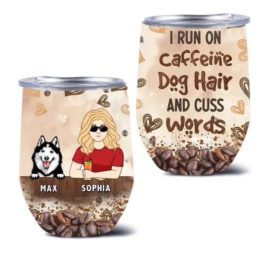 View full detailsPersonalized Pet Wine Tumbler - Gift Idea For Dog/Cat/Horse Lovers - I Run On Caffeine Dog Hair And Cuss Words