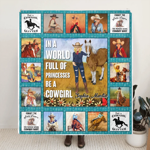 View full detailsPersonalized Horse Girl Quilt/Fleece Throw Blanket - Gift Idea For Girl/Horse Lovers - In A World Full Of Princesses Be A Cowgirl