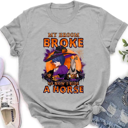 View full detailsPersonalized Witch Shirt/Hoodie - Up to 2 Horses/Dogs/Cats - Halloween Gift Idea for Horse Lovers - My Broom Broke So Now I Ride A Horse