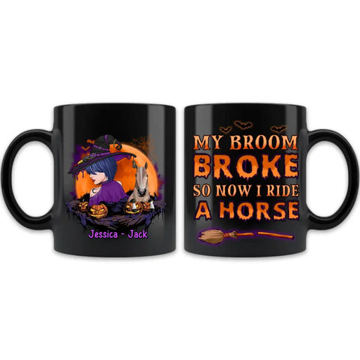 View full detailsPersonalized Witch Coffee Mug - Up to 2 Horses/Dogs/Cats - Halloween Gift Idea for Horse Lovers - My Broom Broke So Now I Ride A Horse