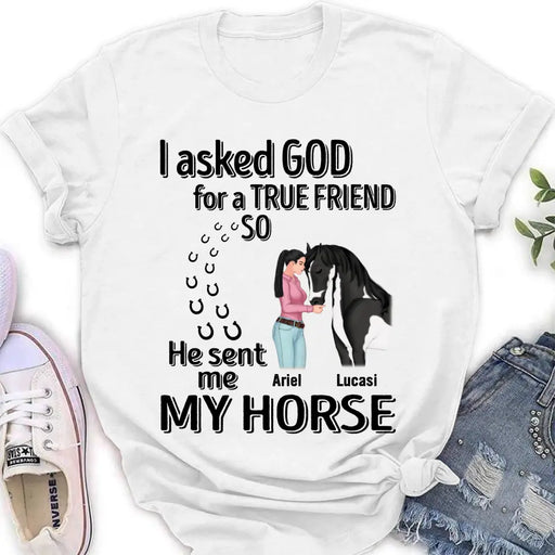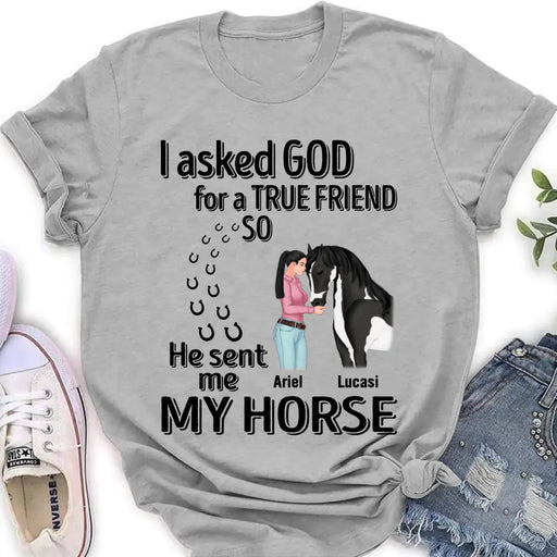 View full detailsCustom Personalized Memorial Horse Shirt/Hoodie - Gift Idea For Horse Lovers - I Asked God For A True Friend So He Sent Me My Horse
