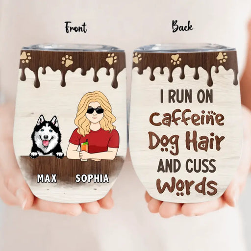 View full detailsPersonalized Pet Wine Tumbler - Up to 4 Dogs/Cats/Horses - Gift Idea For Dog/Cat/Horse Lovers - I Run On Caffeine Dog Hair And Cuss Words