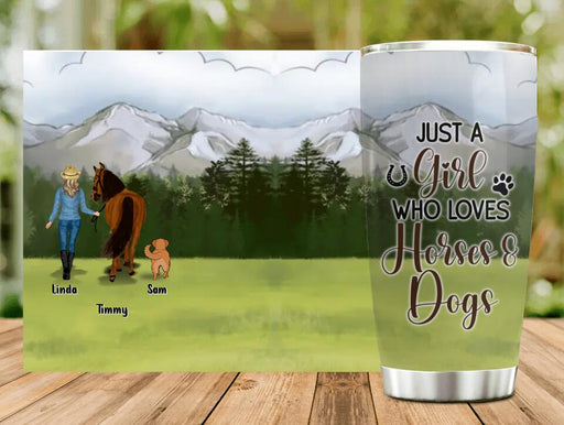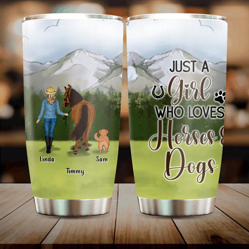 View full detailsPersonalized Horse & Dog Tumbler - Gift Idea For Horse/Dog Lovers With Up To 2 Horses And 4 Dogs - Just A Girl Who Loves Horses & Dogs