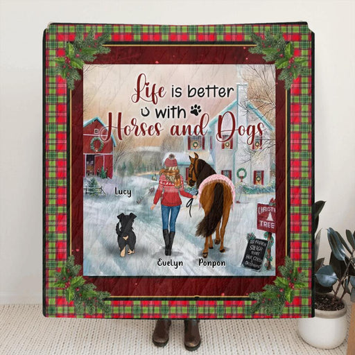 View full detailsPersonalized Horses & Dogs Quilt/Fleece Throw Blanket - Gift Idea For Horse/Dog Lovers - Up to 4 Dogs - Life Is Better With Horses And Dogs