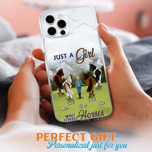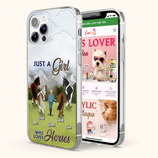 View full detailsPersonalized Horse Lady Phone Case for iPhone/ Samsung - Gift Idea For Horse Lovers with up to 4 Horses - Just A Girl Who Loves Horses
