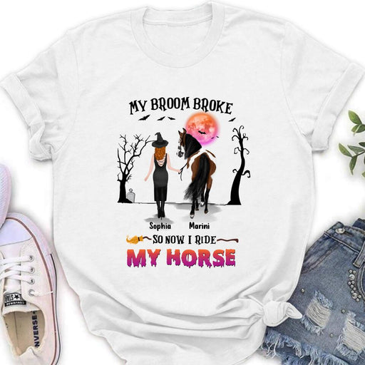 View full detailsCustom Personalized Horse Girl Shirt/ Hoodie - Gift Idea For Halloween/ Horse Lover up to 4 Horses - My Broom Broke So Now I Ride My Horse