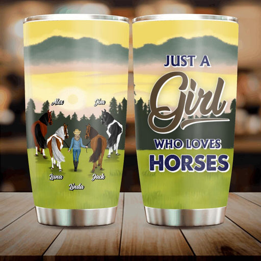 Personalized Horse Lady Tumbler - Gift Idea For Horse Lovers with up to 4 Horses - Just A Girl Who Loves Horses