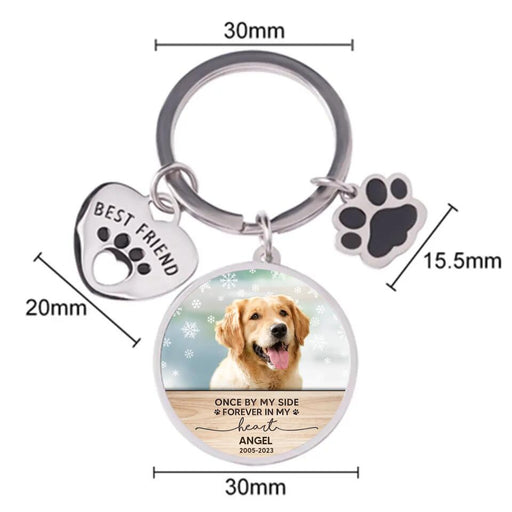 Personalized Photo Keychain Pet Charm Key Ornaments - Memorial Gift for Dog/Cat Lovers - Once By My Side Forever In My Heart