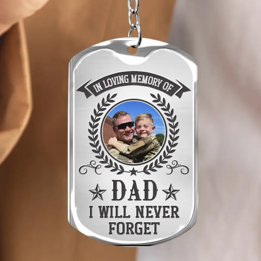 Personalized Memorial Veteran Photo Aluminium Keychain - Gift Idea For Veteran/Father's Day - In Loving Memory Of Dad I Will Never Forget