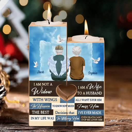 View full detailsPersonalized Couple Heart Candle Holder - Memorial Gift Idea For Couple - I Am Not A Widow I Am A Wife To A Husband With Wings