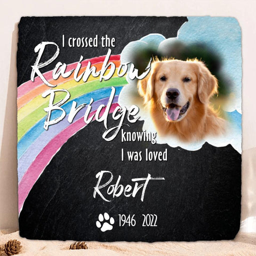 View full detailsCustom Personalized Memorial Photo Square Lithograph - Memorial Gift Idea - I Crossed The Rainbow Bridge Knowing I Was Loved