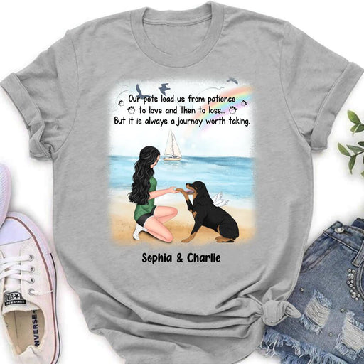 View full detailsPersonalized Dog Mom Shirt/Hoodie - Memorial Gift For Dog Mom/Dog Lover - Our pets lead us from patience to love and then to loss