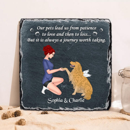 View full detailsPersonalized Dog Mom Square Lithograph - Memorial Gift For Dog Mom/Dog Lover - Our Pets Lead Us From Patience To Love And Then To Loss