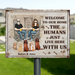 Personalized Couple With Pets Metal Sign - Gift Idea For Mother's Day/Father's Day/Pet Lovers - Up to 5 Pets - Welcome To Our Home The Humans Just Live Here With Us