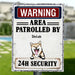 Custom Personalized Warning Dog Vertical Metal Sign - Gift Idea For Dog Lovers - Up To 5 Dogs - Warning Area Patrolled By 24h Security