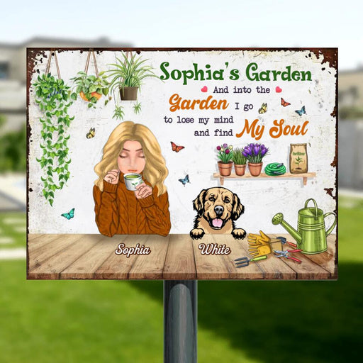 View full detailsPersonalized Dog Mom Metal Sign - Gift Idea For Dog Lover with up to 4 Dogs - And Into The Garden, I Go To Lose My Mind And Find My Soul