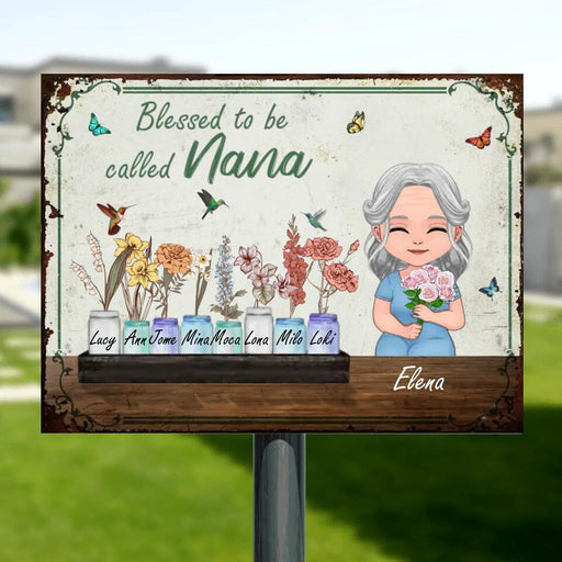 Personalized Flowers Metal Sign - Gift Idea For Mother's Day/Grandma - Up to 8 Flowers - Blessed To Be Called Nana