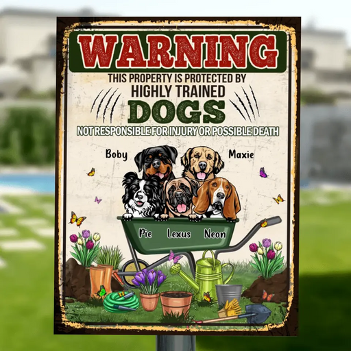 View full detailsPersonalized Dog Metal Sign - Gift Idea For Dog Lovers - Up to 6 Dogs - This Property Is Protected By Highly Trained Dogs, Not Responsible For Injury Or Possible Death