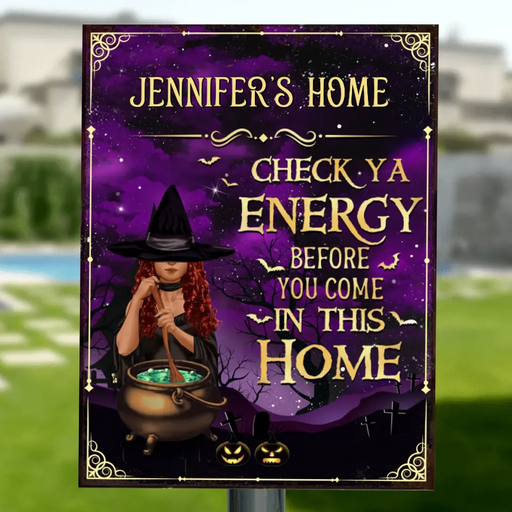 View full detailsCustom Personalized Witch Metal Sign - Halloween Gift Idea For Friend - Check Ya Energy Before You Come In This Home